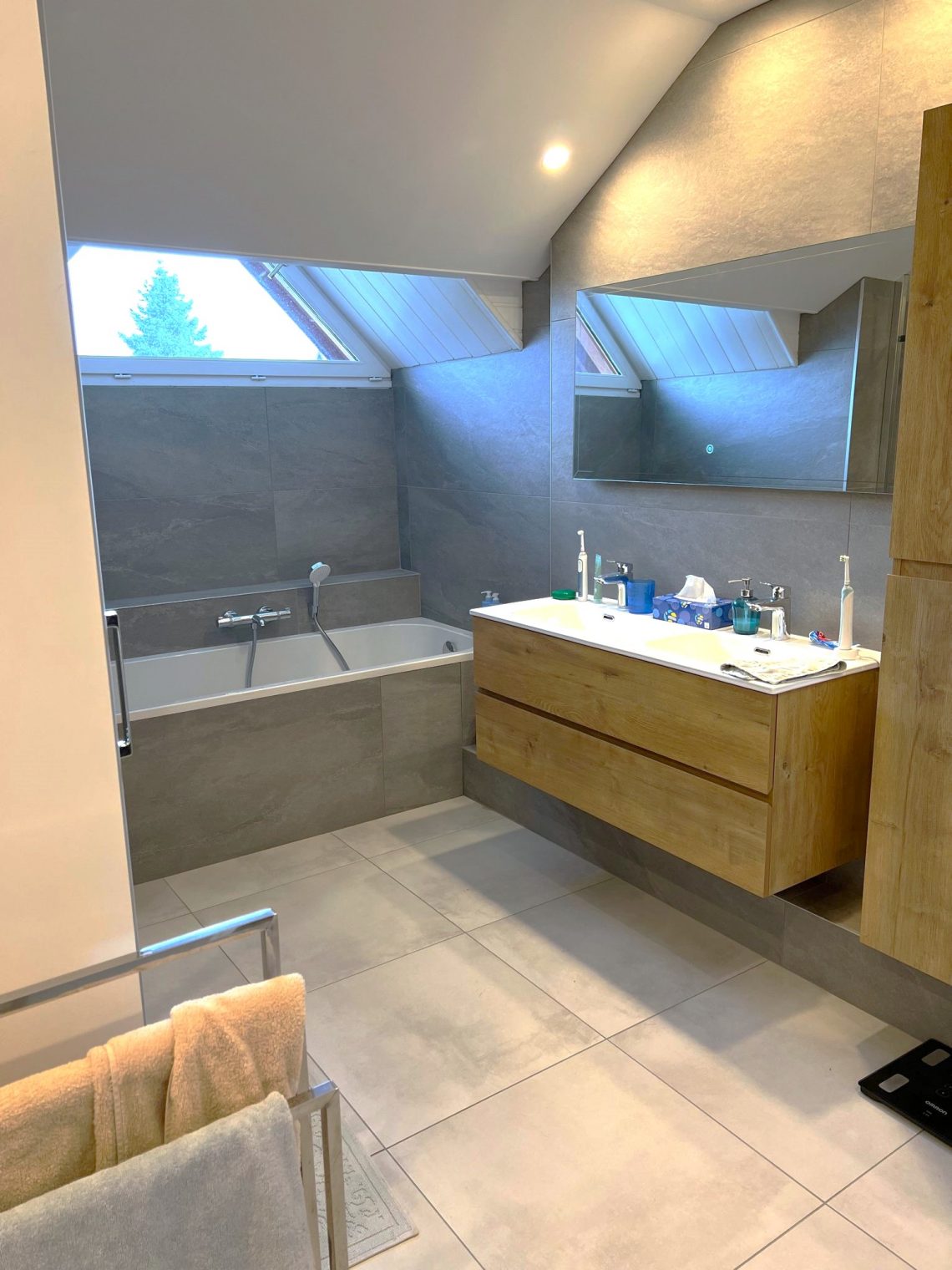 Mes clients avait besoin de rafraichir et mettre à leur goût la maison qu’ils venaient d’acheter. Ils m’ont donc demandé de leur faire des visuels des pièces principales et de les aider à choisir les matériaux pour que le projet se rapproche au mieux de mes propositions. Je vous montre ici l’impressionnante transformation de la salle de bain principale qui est maintenant moderne et fonctionnelle. Une belle mise en œuvre de Lamblin Habitat en association avec des artisans locaux. Avant travaux : Visuels 3D du projet : Après travaux :