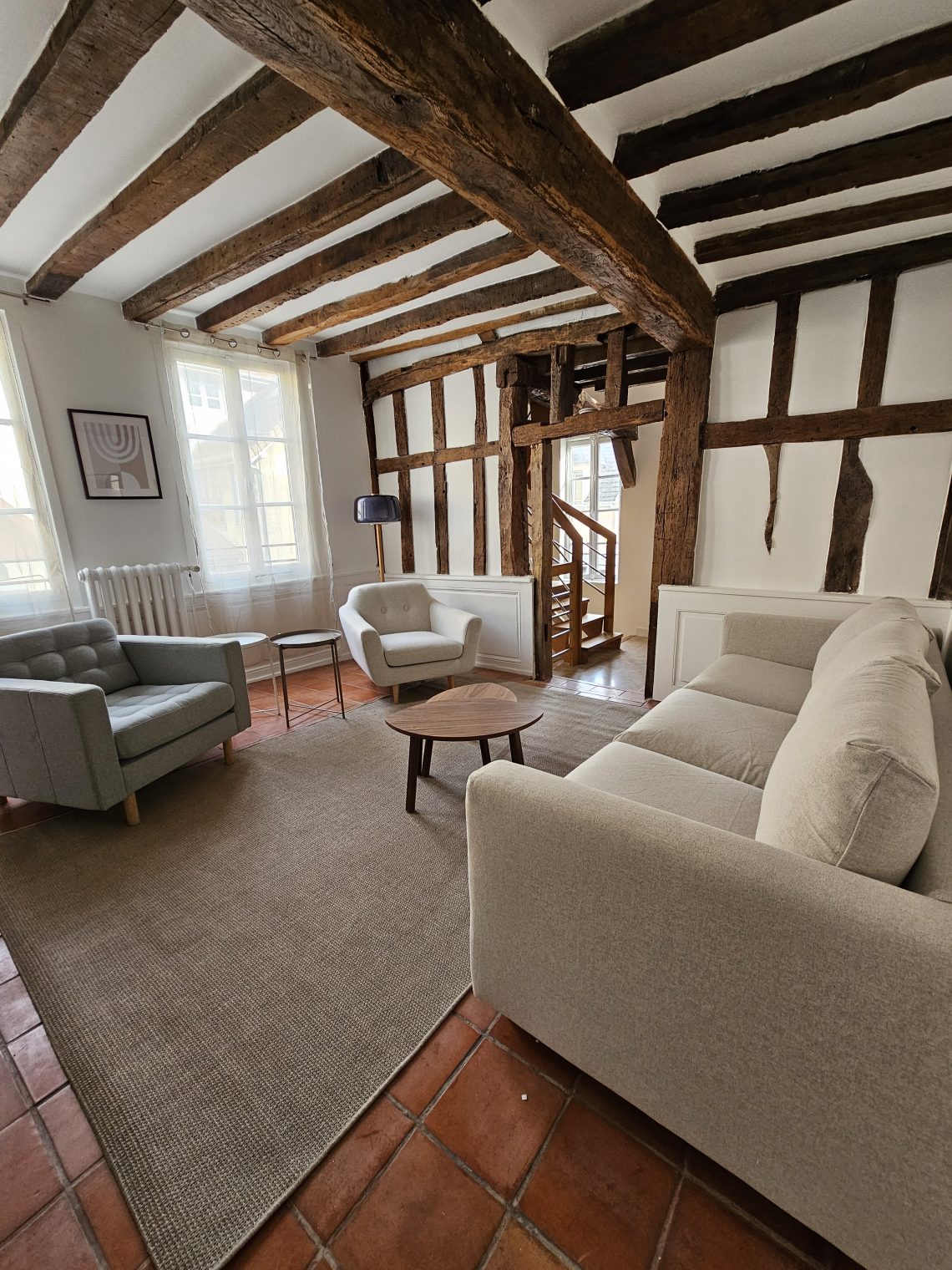 Maison prête à recevoir ! Ici mon client avait besoin que je lui fasse une shopping liste mobilier/décoration pour une future location au cœur de Troyes et que je mette tout en place pour l’aménagement (merci à mon coéquipier de chantier qui a assuré sur la partie montage de meubles et accrochage des cadres et luminaires). Voici en photos une partie de ce qui a été installé car il manque 2/3 détails. On peut déjà apercevoir que cette maison de type champenois va être un petit cocon agréable pour les futurs locataires.