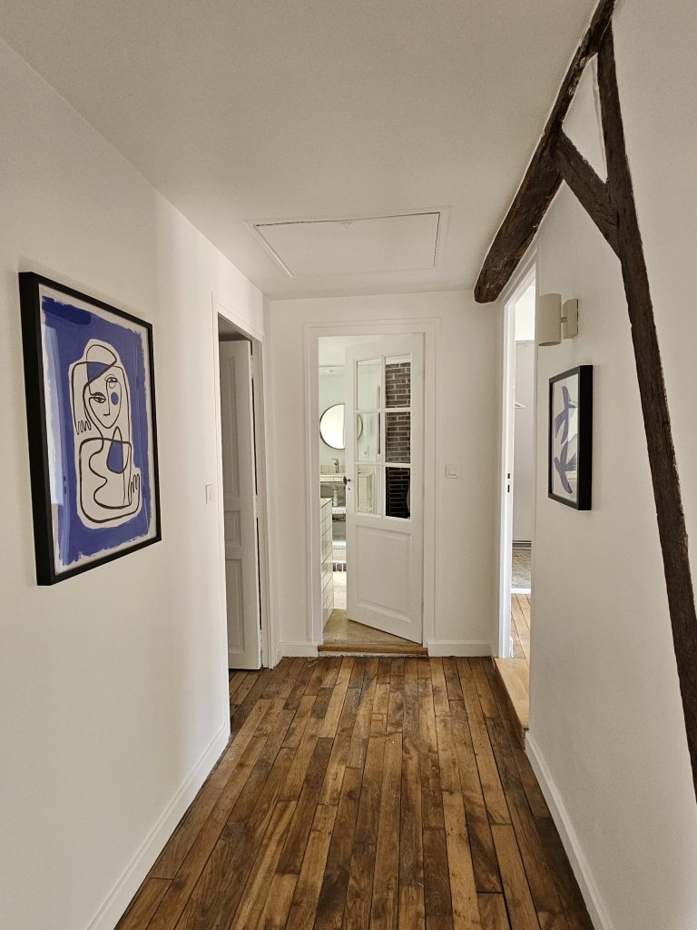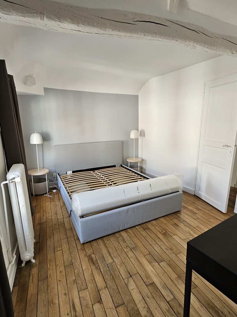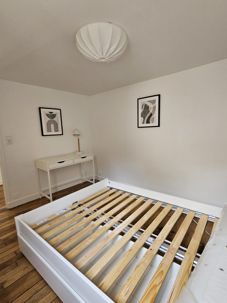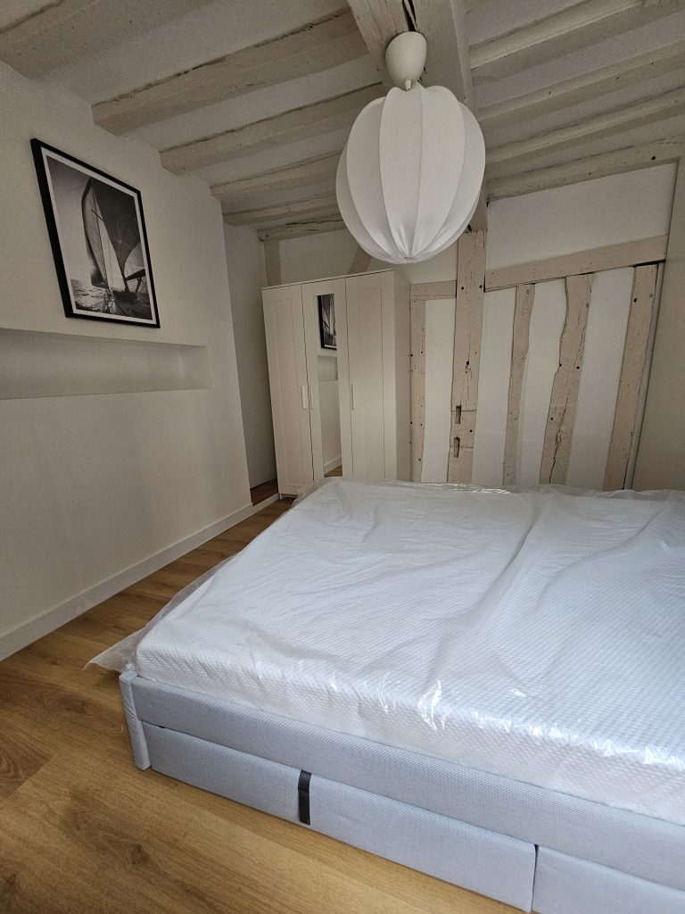 Ici mon client avait besoin que je lui fasse une shopping liste mobilier/décoration pour une future location au cœur de Troyes et que je mette tout en place pour l’aménagement (merci à mon coéquipier de chantier qui a assuré sur la partie montage de meubles et accrochage des cadres et luminaires).