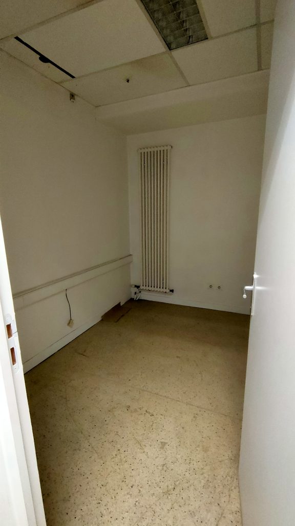 – le 1er dans des bureaux non occupés , les cloisons ont été retirées pour redessiner l’espace (bureau et sanitaires) + création d’une fenêtre sur l’extérieur